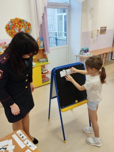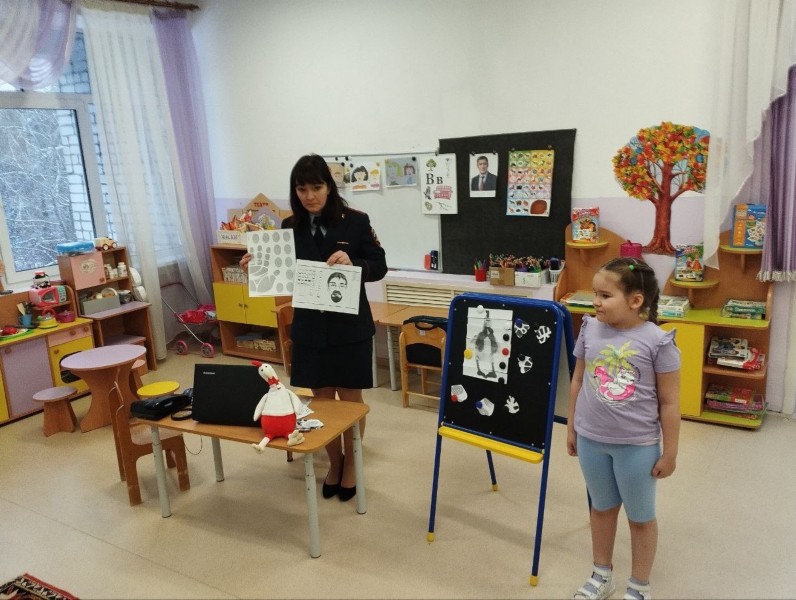 Юлия Александровна рассказала о профессии инспектора по делам несовершеннолетних, затем с детьми разыграла ситуацию " Кража телефона"